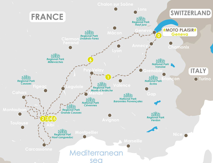 Las mejores motos del sector están disponibles en nuestra base cerca de Ginebra. La moto irá equipada con maletas (según modelo) y GPS con la ruta diaria.